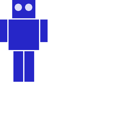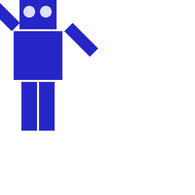 Let's use these transformations to animate a blue robot waving its arms. Rather than try to write it all at once, we will do the work in stages. The first step is to draw the robot without any animation.
