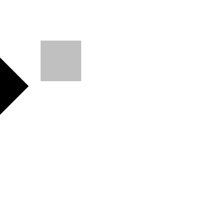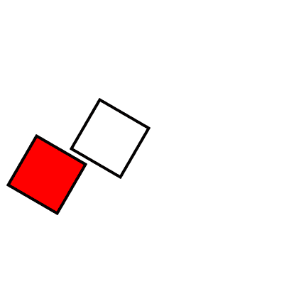 Since most people think in degrees, Processing has a built-in radians() function which takes a number of degrees as its argument and converts it for you. It also has a degrees() function that converts radians to degrees. Given that background, let's try rotating a square clockwise 45 degrees.